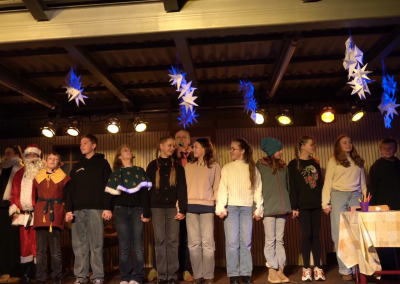 Am letzten Schultag des Kalenderjahres 2025 kam die Schulgemeinschaft zudem in der Turnhalle zusammen, um das Programm noch einmal zu genießen, die besten Teilnehmerinnen und Teilnehmer des Biberwettbewerbs sowie der Mathematikolympiade zu ehren und gemeinsam zu singen. Auf diese Weise wurde die Weihnachtszeit stimmungsvoll eingeleitet.